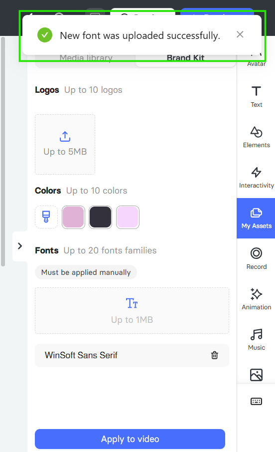 There are three ways to upload your custom fonts: either from your main dashboard or directly within the video editor.