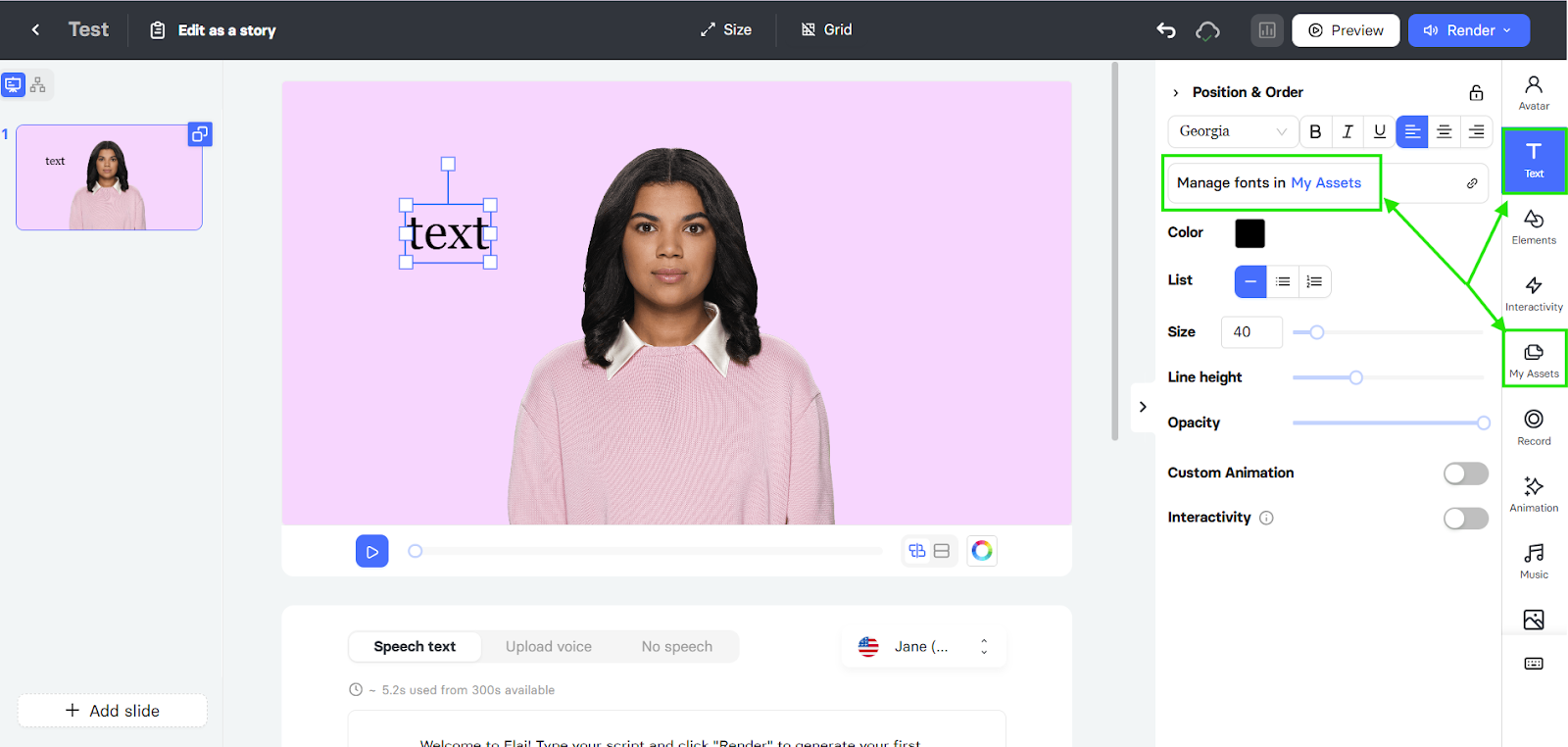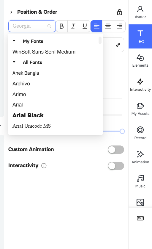 You can easily upload your own fonts to Elai.io to ensure your videos match your brand guidelines perfectly.