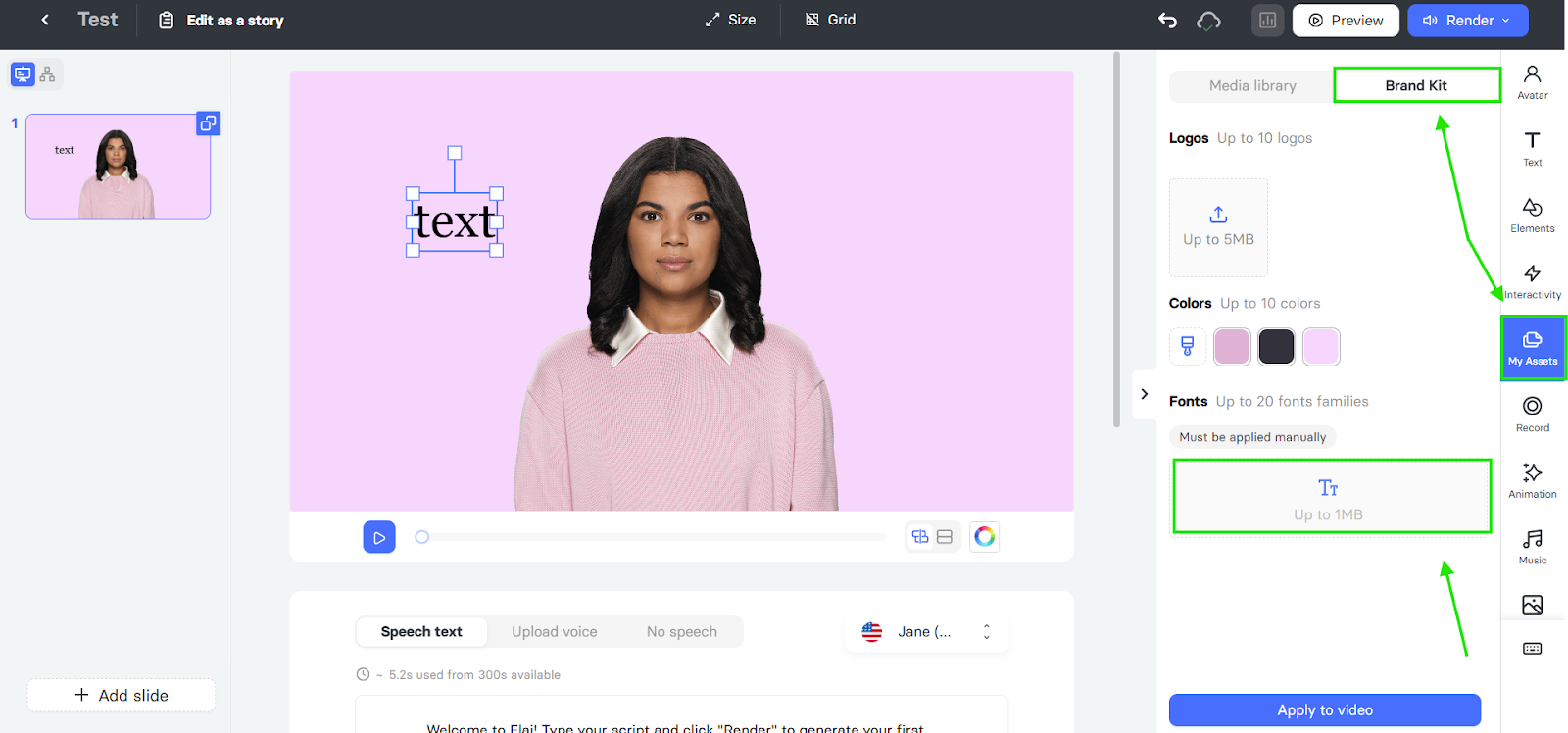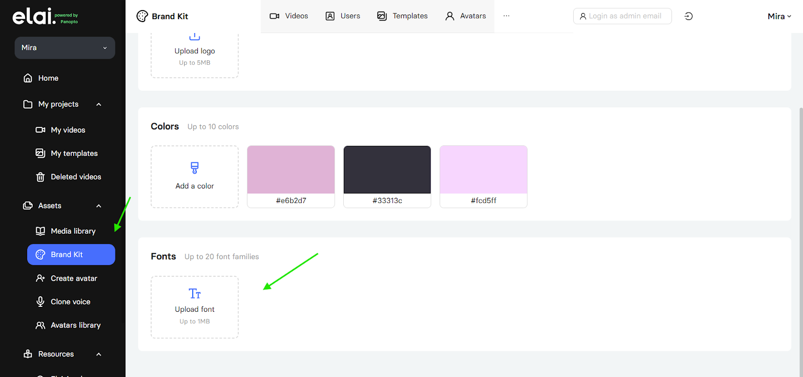 If you encounter any issues uploading your fonts or need assistance upgrading your plan to access the Brand Kit, please contact our support team at support@elai.io