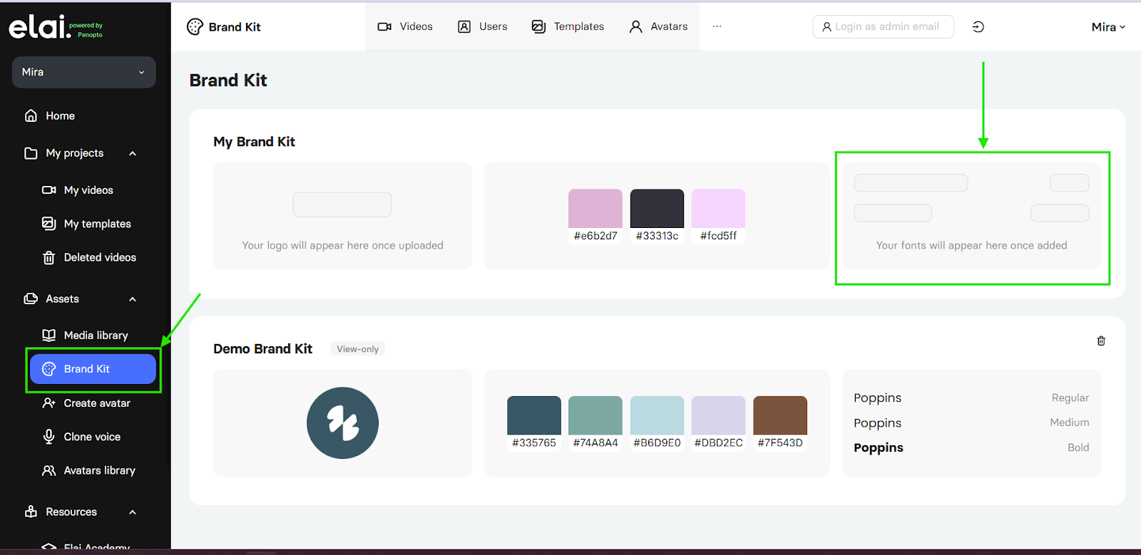 If you want to set up your Brand Kit before creating a video, this is the best method.